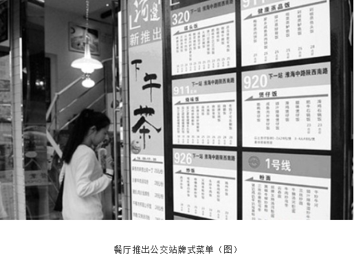 日前,一份特色“公交站牌式菜單”引來路人駐足圍觀,而據餐廳經理透露,自從增設了這塊“站牌”,餐廳的生意也受到了積極的影響。