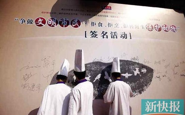 由東莞市文明辦和市林業局共同主辦的“爭做文明市民,拒食野生保護動物”公益倡議活動上周五啟動,當天就吸引了百余家餐飲單位的廚師聯合簽名拒烹野生保護動物。