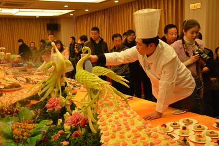 這121道菜品是充分利用一整頭人工飼養的野豬烹制而成,其體重在300斤以上,從頭到尾,加上皮、骨頭、豬腳、內臟等都被名廚們烹制成了美味。由于菜式較多,烹制工藝復雜,所以前期籌備用了4天的時間,正式上灶烹制是在30日21時許,并于31日10時30分全部制作完畢。這么做的目的就是要保證各道菜品的食材優良,菜色優美,由此給觀賞者帶來視覺和味覺上的雙重享受。