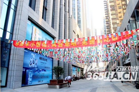 免費(fèi)請(qǐng)吃飯的橫幅高調(diào)地掛在新華國(guó)際商業(yè)街
