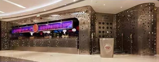 遠(yuǎn)處看像盤踞在商場(chǎng)里的金屬洞穴,外圍用不銹鋼緊緊包裹,墻壁上安置了碩大的金銀兩色蜘蛛。在進(jìn)門處,運(yùn)用高科技手段,用水幕再現(xiàn)了一個(gè)逼真的水簾洞。餐桌上每個(gè)蜘蛛都帶上了緊箍咒,這些蜘蛛也成為嘻游記餐廳的標(biāo)志元素。設(shè)計(jì)時(shí)沒有刻意去塑造西游記的形象,而是用很多插畫來表達(dá)現(xiàn)代想象。翻開菜單就像是翻開一本故事書,菜名都非常有西游記特色,例如“俺老孫最牛”、“女兒國(guó)的春夢(mèng)”、“松茸洋芋紫金缽”等。